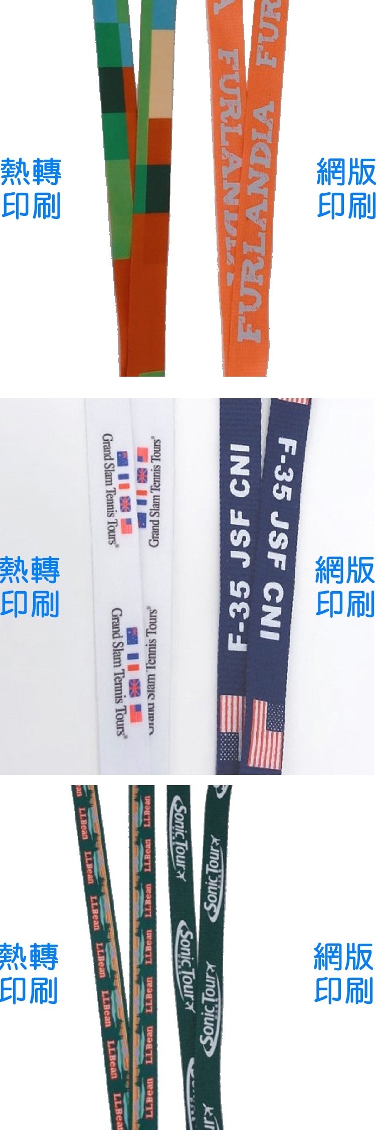 ※我們的熱轉印是業界最強,擁有高階進口機器+原廠墨水+高檔轉印紙製作(缺哪一個都會影響質感喔)、我們有專業美工團隊,您提供出LOGO圖檔,我們甚至可以幫您設計出更豐富的變化,把圖檔編輯成更高清更適合印刷的品質,有多台機器可同時開工,幫您趕製急件或大量的織帶需求,我們更能聯手客戶製作出可供販售的商品(例如:即可拍織帶、USB織帶、吊帶、狗帶..等等,這些都是我們曾經幫客戶做出的獨家產品。