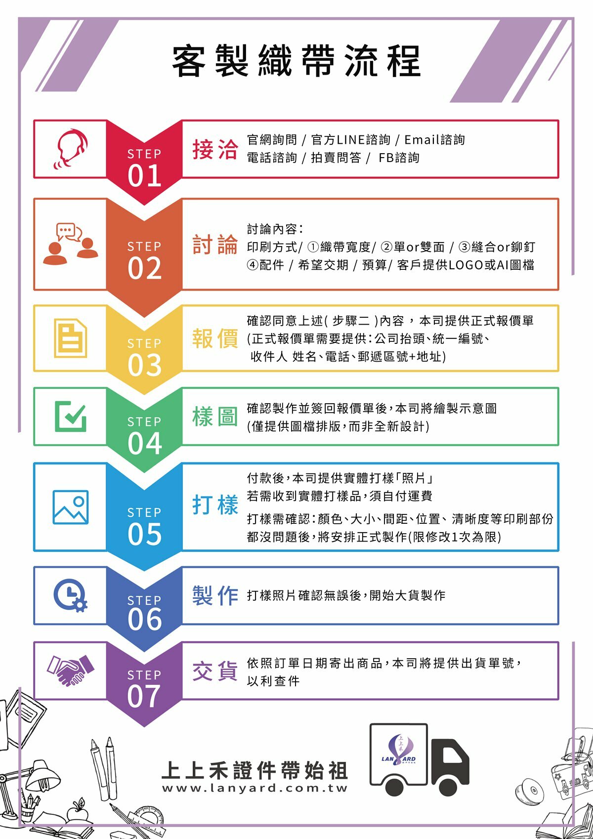 【證件帶始祖-上上禾】有多年客製化生產經驗,從圖片打樣→訂購→出貨等皆有完善流程。